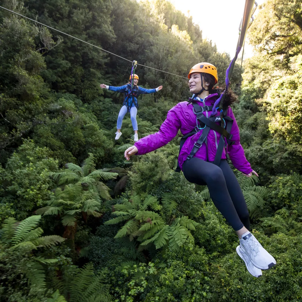The Original Canopy Tour takes you deep into a forest frozen in time, one of the last pockets of pre-human wilderness in Aotearoa. Over three incredible hours, you’ll fly on six ziplines, including a 220-metre canopy ride, cross two swing bridges, and explore treetop platforms up to 18 metres high. Launch from a 1,000-year-old rimu tree, hear the tūī and korimakō calling through the trees, and see for yourself what a predator-free New Zealand could look like. Guided in small groups, this is adventure, conservation, and nature at its best.