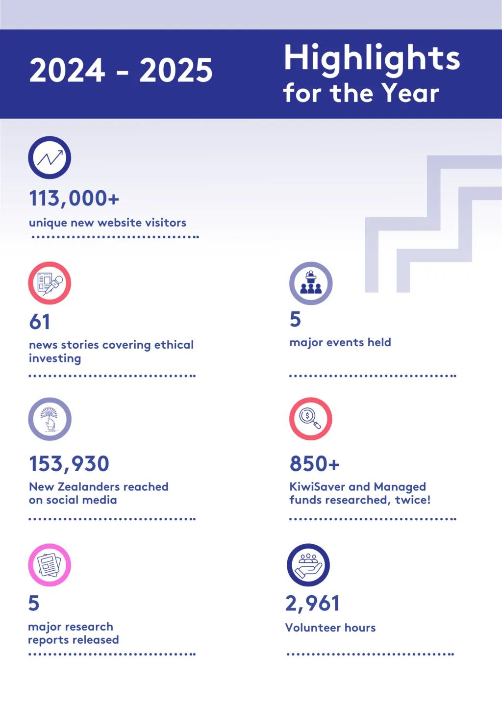 We have transitioned from a small start-up charity to a valued source of information, research, opinion and trust for New Zealanders. As we celebrate this progress, we're focused on what's next. Our 2024/2025 impact report showcases our achievements and charts our path forward.